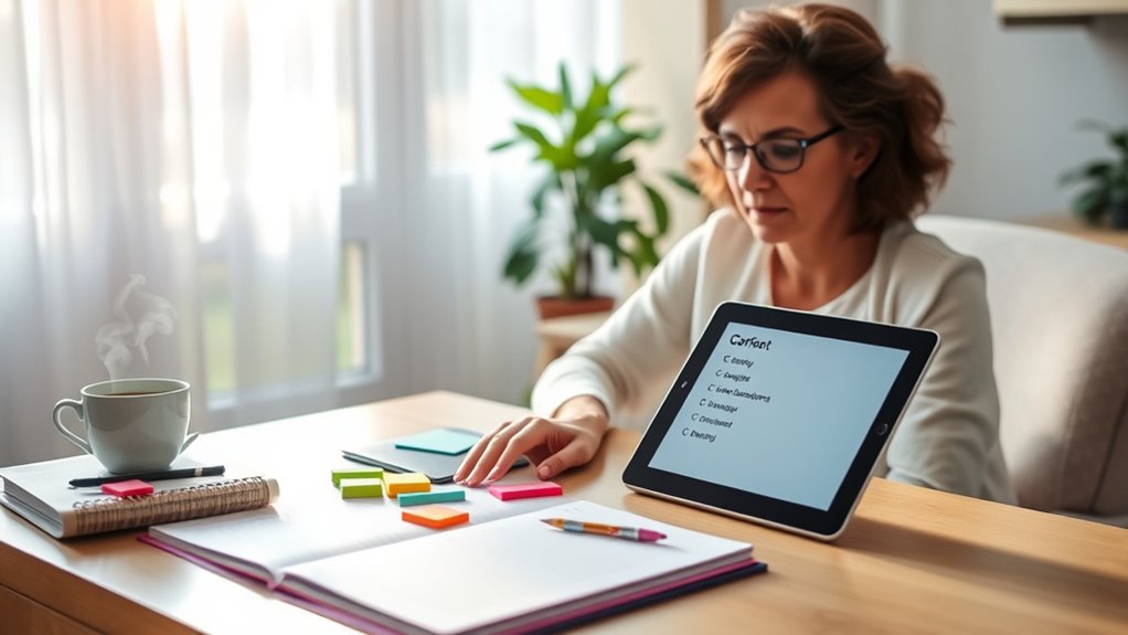To make the most of your limited time, focus on tasks that have the greatest impact on your loved one’s well-being. Learning to distinguish between urgent needs and important long-term goals helps you allocate your energy wisely. Prioritizing effectively guarantees you provide quality care without feeling overwhelmed. Incorporating deep product research into your decision-making process can also help you identify the most effective caregiving tools and resources. Staying informed about modern kitchen technology can inspire you to find innovative solutions that save time and reduce stress in your daily routine. Developing simple systems for routine tasks can further streamline your caregiving efforts and create a more organized environment. Engaging with digital resources such as apps and newsletters can further support your organization and planning efforts. Additionally, understanding air purifier maintenance can ensure your environment remains healthy and safe for your loved ones.