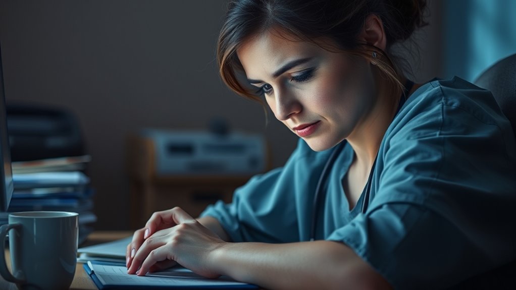 Think of compassion fatigue like a garden that needs regular tending. You can prevent it by actively practicing empathy cultivation and stress management techniques, such as mindfulness or deep breathing. For example, scheduling brief breaks during your shift helps replenish your emotional resources. By intentionally caring for yourself, you reduce burnout risk and keep your compassion vibrant, ensuring you stay resilient and effective in supporting others.