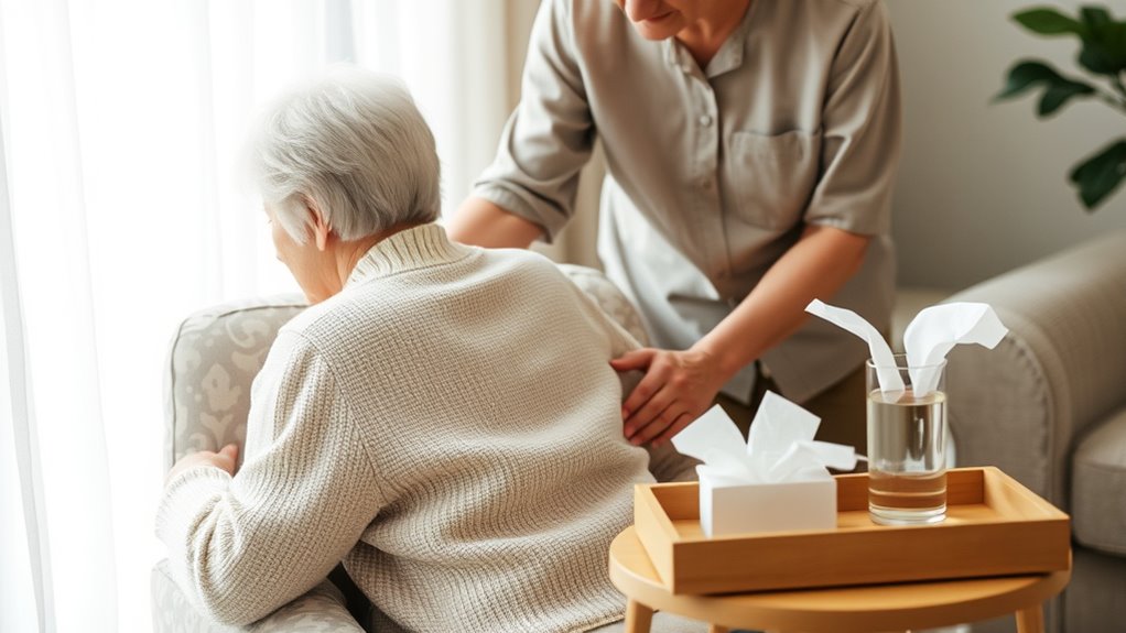 You might notice your loved one feeling embarrassed or frustrated, yet also relieved and grateful for your support. They may experience shame, anger, or sadness, but also trust and comfort from your understanding. This juxtaposition shows how assistance can evoke complex emotions—dignity and vulnerability intertwine. By approaching with patience and empathy, you help them feel respected, easing emotional distress and fostering a sense of security during a sensitive time.
