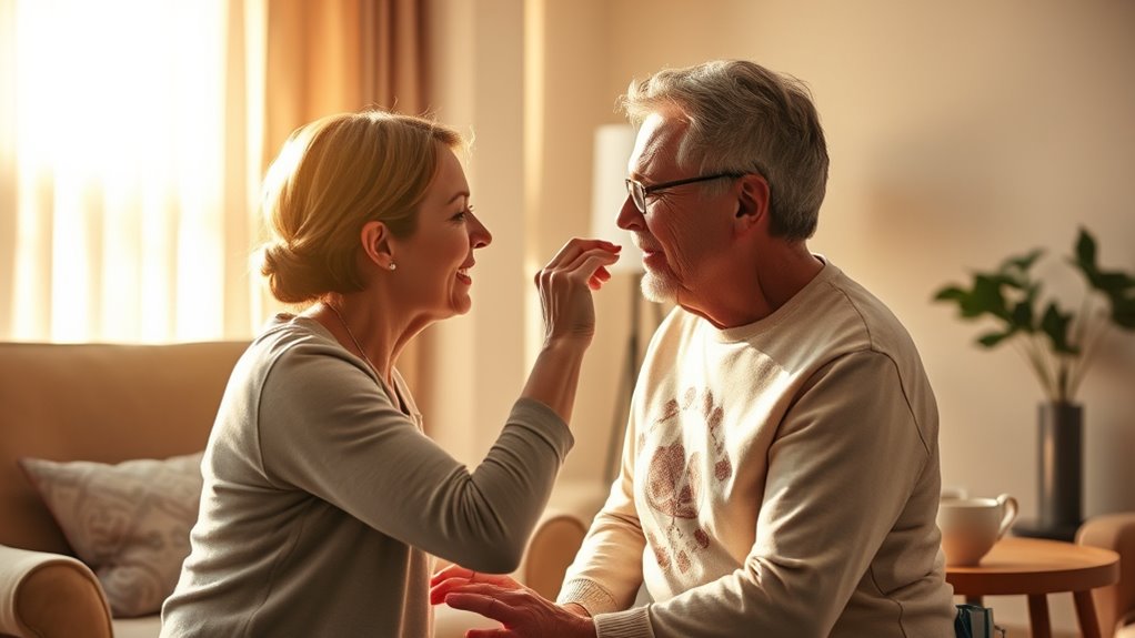 Adjusting to your new role as caregiver for your spouse can feel overwhelming, but building emotional resilience and cultivating open, compassionate communication can help you navigate the challenges. Stay grounded amidst uncertainty by recognizing your emotions and finding healthy outlets like talking or journaling. Establish trust by being honest and kind, while also taking time for self-care. Maintaining connection and normalcy is key. To learn effective strategies for balancing care, connection, and your well-being, continue exploring these essential approaches.