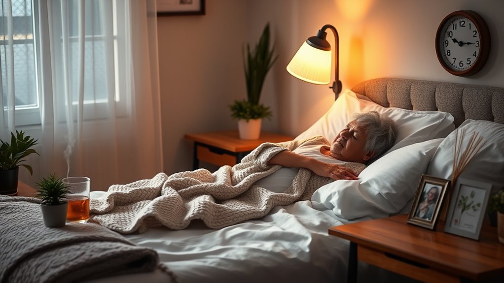 To help your loved one sleep better, establish a consistent sleep schedule and create a calming bedtime routine, like reading or gentle stretching. Make the bedroom comfortable, cool, dark, and quiet. Encourage daily physical activity and limit caffeine, alcohol, and screen time before bed. Manage any health conditions with their healthcare provider and promote relaxation techniques such as deep breathing or calming music. Keep things supportive, and you’ll discover more ways to improve their sleep quality.