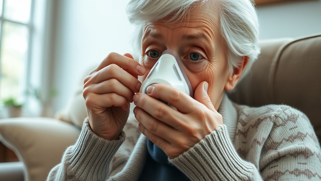 Shortness of breath and asthma attacks can be frightening for seniors and their caregivers, but quick, calm action can make a substantial difference. When your loved one suddenly struggles to breathe, staying composed helps you respond effectively. One of the most important steps is guaranteeing proper medication management. Make sure their inhalers and prescribed medications are up to date, easily accessible, and used correctly. Familiarize yourself with their medication schedules so you can administer the right drugs promptly during an attack. If they have a rescue inhaler, keep it nearby at all times, and regularly check its expiration date. Proper medication management not only helps control symptoms but also reduces the risk of severe attacks. It’s essential to work with their healthcare provider to develop an individualized treatment plan and understand when to escalate care. This proactive approach can prevent emergencies from escalating and provide peace of mind. Additionally, using air purifiers following manufacturer guidelines can help improve indoor air quality and reduce triggers for breathing difficulties.