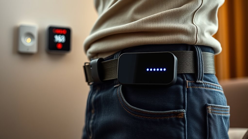 When you choose wearable devices, you’re opting for a discreet, portable solution that your loved one can wear comfortably throughout the day. These devices are equipped with accelerometers and gyroscopes that monitor movement patterns constantly. If a fall is detected—whether it’s a sudden drop or an unusual motion—the device springs into action by sending an immediate alert. This alert can be sent through a connected smartphone app or directly to a monitoring center, depending on the device’s capabilities. The key advantage of wearable devices is their ability to provide real-time data, guaranteeing that no fall goes unnoticed, even if the person is unable to call for help themselves.