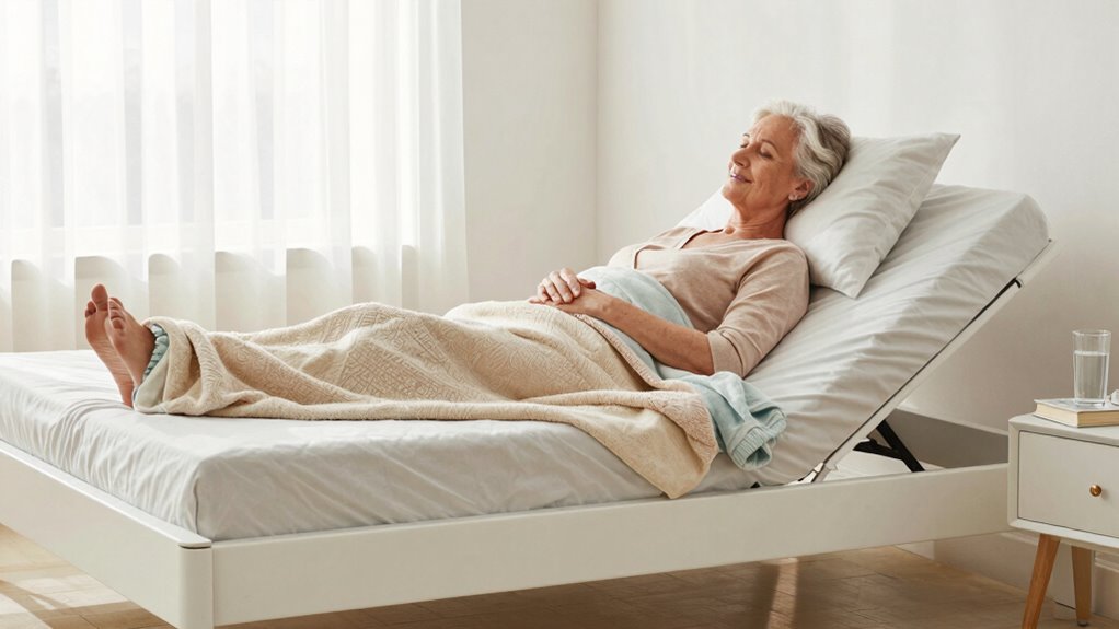 Safety concerns are valid, but adjustable beds are designed with your safety in mind. They include features like sturdy construction, safety locks, and fall prevention mechanisms to keep you secure. However, you should still use the remote carefully and confirm the bed is properly assembled. It’s better to be safe than sorry, so always follow the manufacturer’s guidelines and consult your healthcare provider if you have any worries.