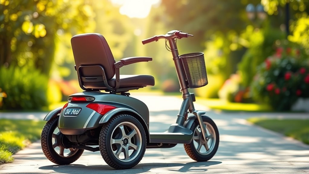 I know choosing the right mobility scooter can feel overwhelming, but remember, a well-chosen 3-wheel model offers stability, ease of use, and independence. Even if you’re worried about complexity, many scooters now feature simple controls and lightweight designs that make riding a breeze. Prioritizing comfort and safety guarantees you’ll enjoy greater freedom without sacrificing convenience. So, don’t hesitate—select the one that best fits your needs and start enjoying your outings with confidence!
