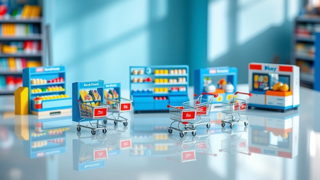 To get the best deal on a Bluey supermarket playset, I recommend comparing prices across multiple online retailers and brick-and-mortar stores. Using price tracking tools or browser extensions helps monitor fluctuations and alerts me when prices drop, saving money. I also look out for seasonal sales, discounts, or promotional events, which often offer significant savings. Before purchasing, I review customer feedback and ratings to ensure that a lower price doesn’t compromise quality or authenticity. Additionally, I consider bundle offers or package deals that include extra accessories or figures, providing better overall value. Combining these strategies helps me find the best price without sacrificing product quality, making sure I get the most for my money while choosing the perfect playset.