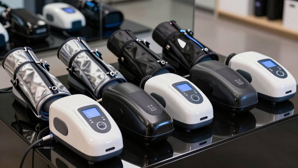 If you’re searching for the 15 best leg compression therapy pumps for 2026, I’ve got you covered. These models combine advanced air compression technology, multiple modes, and personalized settings to help improve circulation, reduce pain, and speed recovery. From portable cordless designs to full-leg coverage with heat, each offers features tailored to different needs. Keep going, and you’ll discover expert insights to help you choose the perfect device for your lifestyle and health goals.