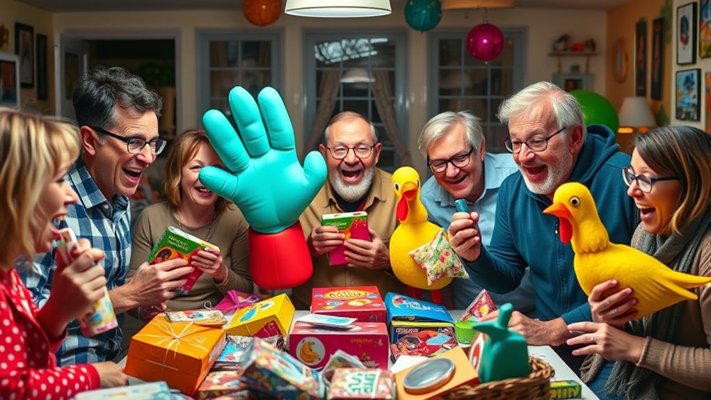 Understanding the recipient’s sense of humor is essential when picking a gag gift that will genuinely make them laugh. If they love slapstick or sarcastic jokes, choose something that plays into those styles. For fans of absurd or silly humor, look for gifts that lean into the ridiculous. It’s also important to gauge their comfort level with edgy or risqué humor—what’s funny to one person might offend another. Knowing whether they prefer practical jokes or novelty items can guide your choice, ensuring the gift matches their taste. Reflect on their past reactions to similar humor, as this insight helps predict how they’ll respond. Ultimately, aligning the gift with their humor style guarantees a more genuine and positive reaction.