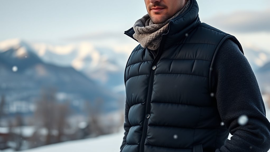 Selecting a heated vest that feels comfortable and endures tough conditions hinges on the materials used. I look for soft, breathable fabrics that wick moisture away, so I stay comfortable even during long wear or intense activity. Durable materials like nylon or polyester are essential—they handle repeated washing and resist outdoor wear and tear. A good vest also features high-quality insulation linings that trap heat and extend its lifespan. In harsh weather, water-resistant and windproof properties make a big difference, keeping me dry and protected. Reinforced seams and sturdy zippers are a must—they prevent tears and ensure the vest maintains its integrity over time. Overall, choosing the right materials means better comfort, longevity, and performance in any winter adventure.