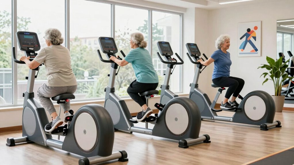 Absolutely, these machines have safety features like emergency stop buttons, so you’re not left hanging if things go awry. I always say, safety is no accident, and manufacturers know how important it is for seniors. These features provide peace of mind, allowing you to focus on your workout without worry. Rest assured, modern recumbent cross trainers prioritize your safety, making your exercise routine both effective and secure.