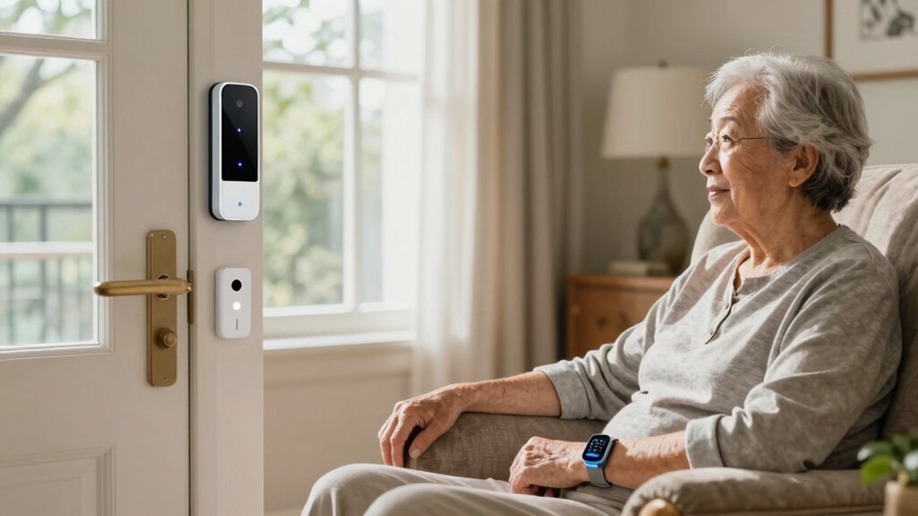 You might wonder if safety devices invade privacy, and I get it. These devices are designed with discreet features—like subtle GPS trackers or door sensors—that keep seniors safe without being intrusive. They prioritize respect and dignity, often allowing customizable settings. I’ve seen how the right balance guarantees safety while preserving independence, making seniors feel secure without feeling watched. Privacy concerns are addressed through thoughtful design and user control.