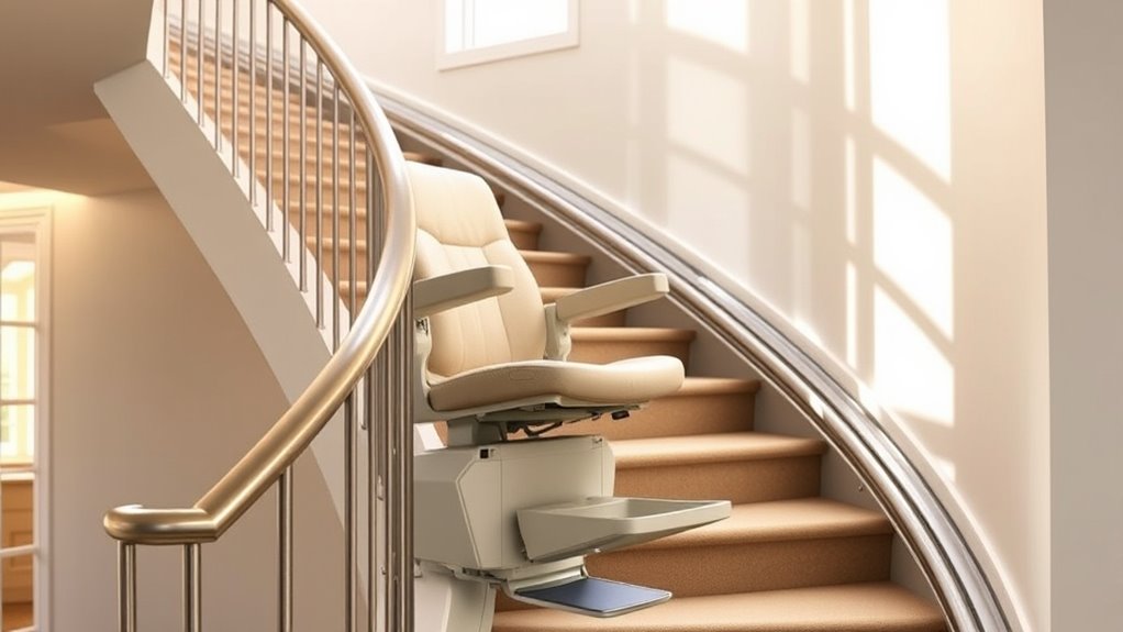 Imagine seamlessly blending function with elegance—stair lifts are designed to do just that. I’ve found modern models feature sleek, unobtrusive rails and customizable upholstery, allowing them to complement your home’s decor effortlessly. Many lifts are discreetly tucked away when not in use, ensuring they enhance rather than detract from your space. This thoughtful integration makes safety and comfort feel natural, preserving your home’s aesthetic charm.