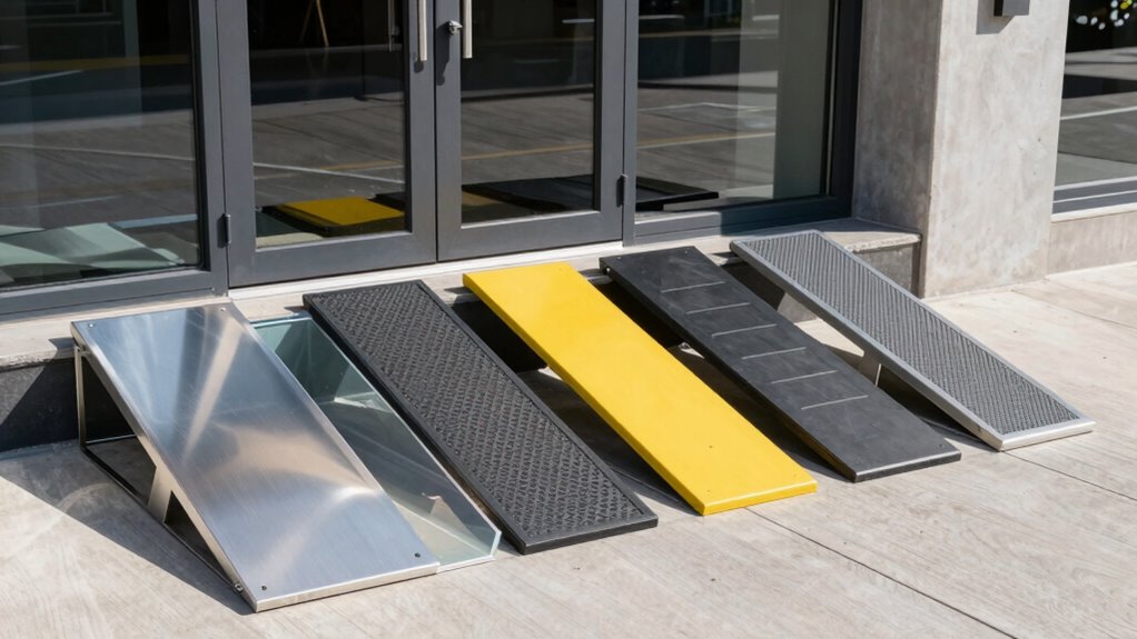 Threshold ramp systems vary in durability and materials, depending on their design and intended use. I’ve found that metal ramps, like aluminum or steel, tend to be more durable and withstand heavy weight and weather conditions better. On the other hand, composite or plastic ramps are lighter and easier to carry but may wear out faster or be less sturdy over time. Your choice depends on balance between portability and long-term durability.